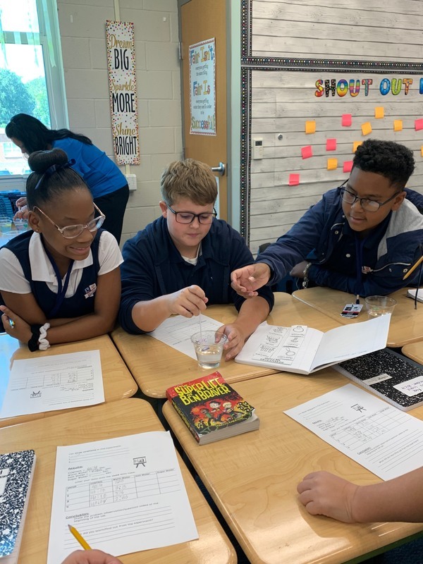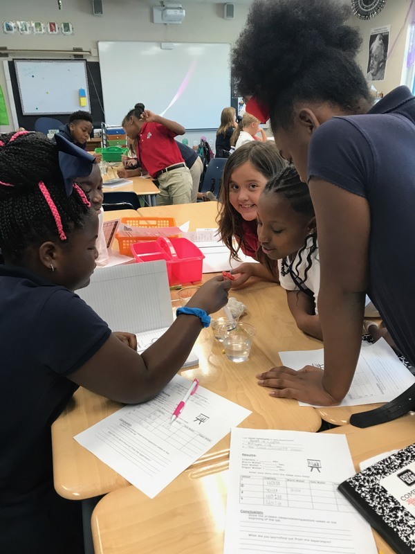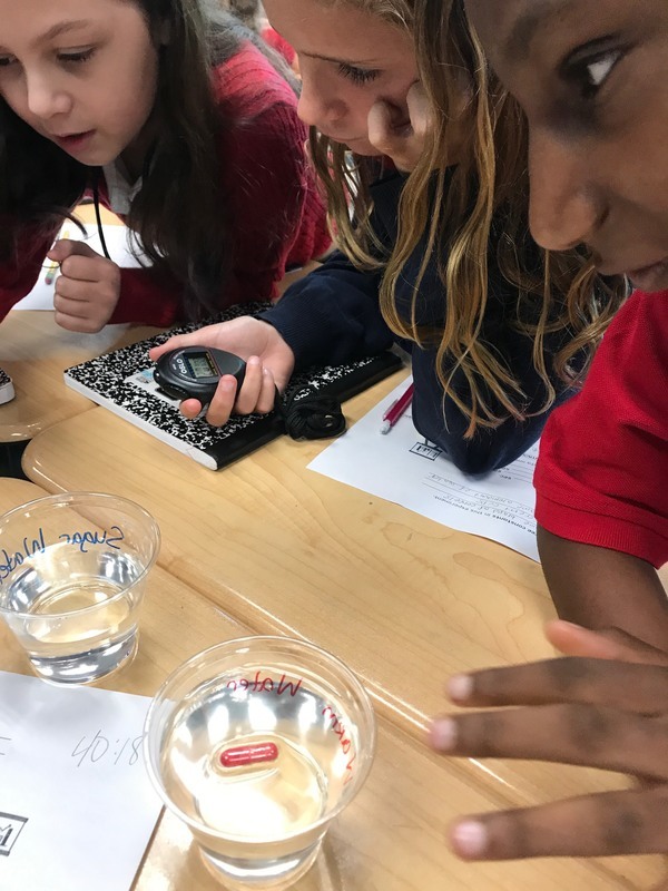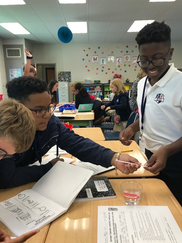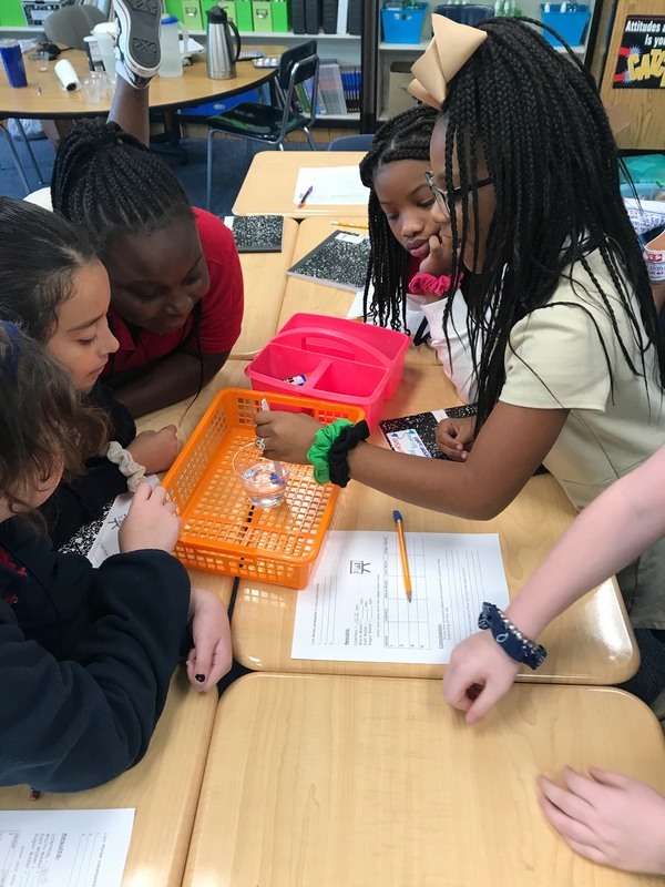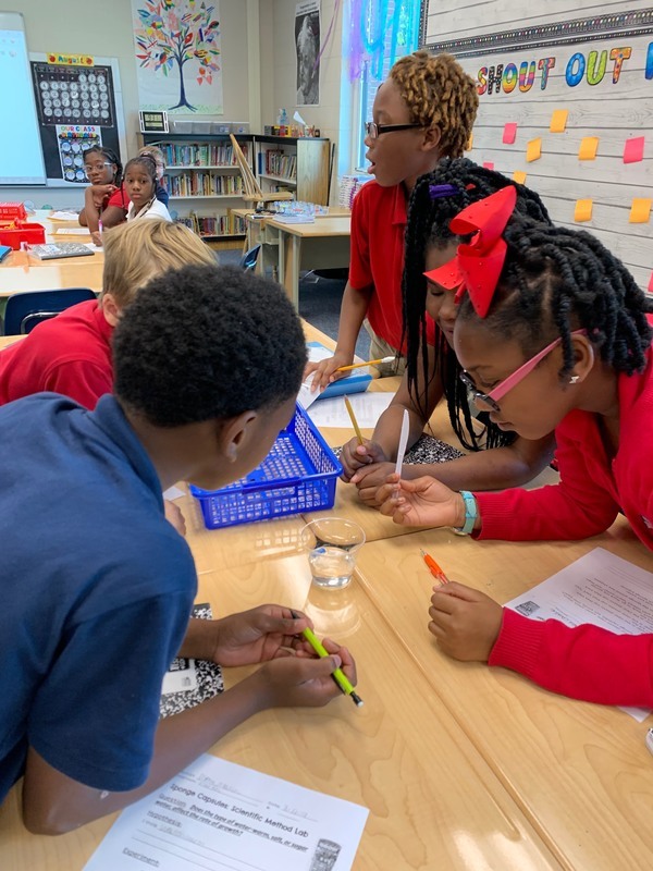 Mrs. Miller’s 5th Grade Science classes were hard at work applying Science and Engineering practices during lab on Tuesday! Students were engaged in planning and carrying out an investigation to determine which liquid environment would release their sponge animal at the fastest rate. Students also collected, analyzed and interpreted data with their groups and compared their results with their entire class to identify trends and discrepancies.