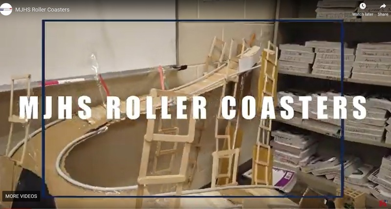 MJHS students have been hard at work for the past two weeks experimenting on and testing out their own roller coasters! The students have three tries to get their marble to the finish line while completing the criteria of having three hills and either a turn, curve, or loop. Here are some of the highlights from the first day of testing the homemade thrill rides!