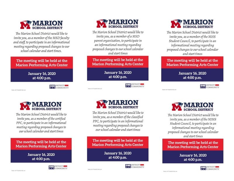 As a point of clarification regarding the MSD informational meeting scheduled for 4:00 p.m. January 16 in the Performing Arts Center, the purpose of the gathering is to assess the interest of our faculty and staff and a sampling of key stakeholder groups, regarding both the proposed Hybrid School Calendar and staggered start time concept.