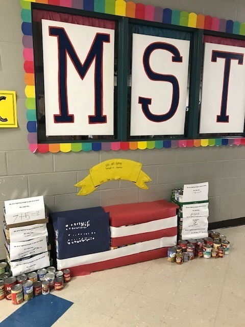 MST has had several exciting weeks back since the Christmas break. Students learned some great lessons on engineering, teamwork and community service. In conjunction with our 100th day of school, students brought canned goods (each class with a goal of 100) and worked together as grade levels to create "CANstructions", a visual and engineering feat. Excitement filled the building last Friday as their visions came to life. Monday community members came by to judge the structures on creativity, height and number of cans used. Some of our student ambassadors served as greeters and invited our judges to enjoy some tasty treats. Prizes will be given to the classes that collected 100 or more cans. The CANstructure winner will receive a pizza party donated by Pizza Pro. Structures will be up for our honor awards assemblies 1/28-1/29 for parents to vote on their favorites. And finally, parent volunteers will help deliver over 3000 cans to Hope House Ministries.