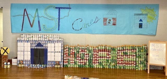 In recognition of the 100th day of school, students at Marion Math, Science, and Technology Magnet School (MST) collected canned goods for Hope House Ministries. A total of 2,650 cans were collected during the project.