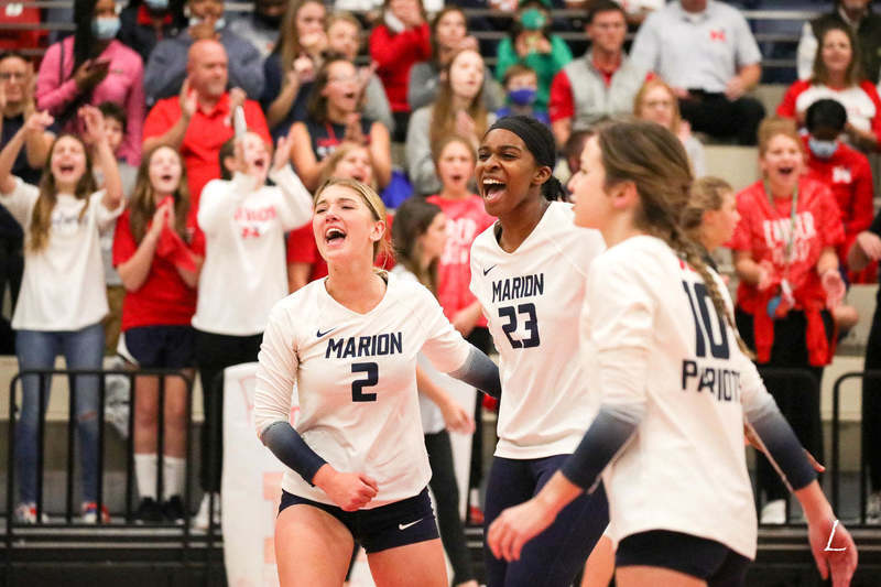 Marion volleyball logged a program-best 27-game winning streak in 2021, steamrolling to the 5A East conference title, the Patriots' first outright league crown since 2015. Hosting the state tournament for the first time ever, Marion (27-2 overall) eliminated White Hall in straight sets before topping defending state champion Greenwood in five sets in the quarterfinals to make the semifinals for the first time since playing for the 2016 Class 6A state title. It was Marion's 12th semifinal appearance in 25 seasons under Coach Lisa Beasley.