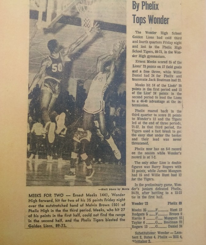 Newspaper clipping from 1969 game against West Memphis Wonder