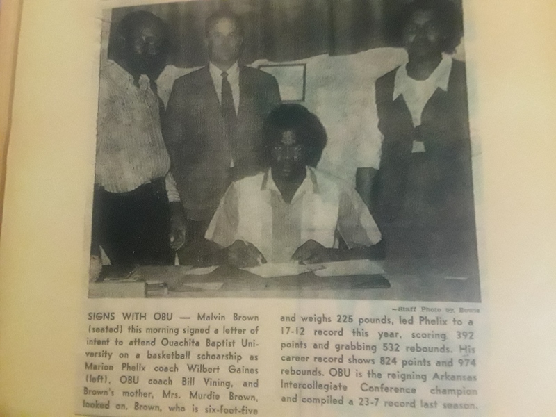 Newspaper clipping from Melvin Brown signing to play basketball at Ouachita Baptist