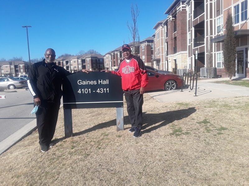 Melvin Brown is pictured with Dr. Wilbert Gaines, his high school basketball coach at Phelix High School. Gaines played a role in having the nickname of Marion High School changed from “Spartans” to “Patriots” when the local schools were integrated in 1970. Gaines later became a professor at Arkansas State University, where a residence hall was named in his honor in 2016.