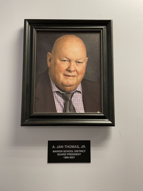 “The impact Mr. Thomas has had on the Marion School District -- and the Marion community -- cannot be measured,” Fenter said. “In a district that has undergone numerous significant changes over the past several decades -- many of which were potentially traumatic -- Jan Thomas’ leadership was the steady hand that guided the ship. There are simply not enough words to express the contributions Jan Thomas made to our schools and our community.”